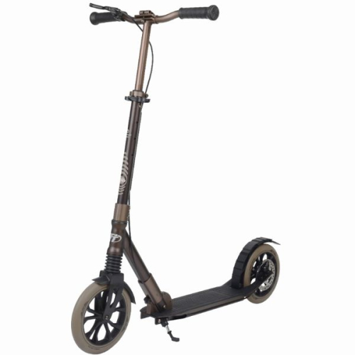 Алюминиевый руль шириной 52 см оснащен специальным зажимом, который исключает люфт в местах крепления ручек. Самокат поставляется с анатомическими грипсами для комфортного хвата. Руль можно фиксировать в четырех положениях, от 96 до 111 см от поверхности. Также предусмотрена возможность крепления ремешка для переноски самоката. Фирменные колеса диаметром 230 мм и шириной 30 мм изготовлены из прочной пластмассы. Рабочая поверхность колес выполнена из полиуретана высотой 28 мм, что в сочетании с подшипниками стандарта ABEC 9 обеспечивает отличный накат и амортизацию во время поездки.