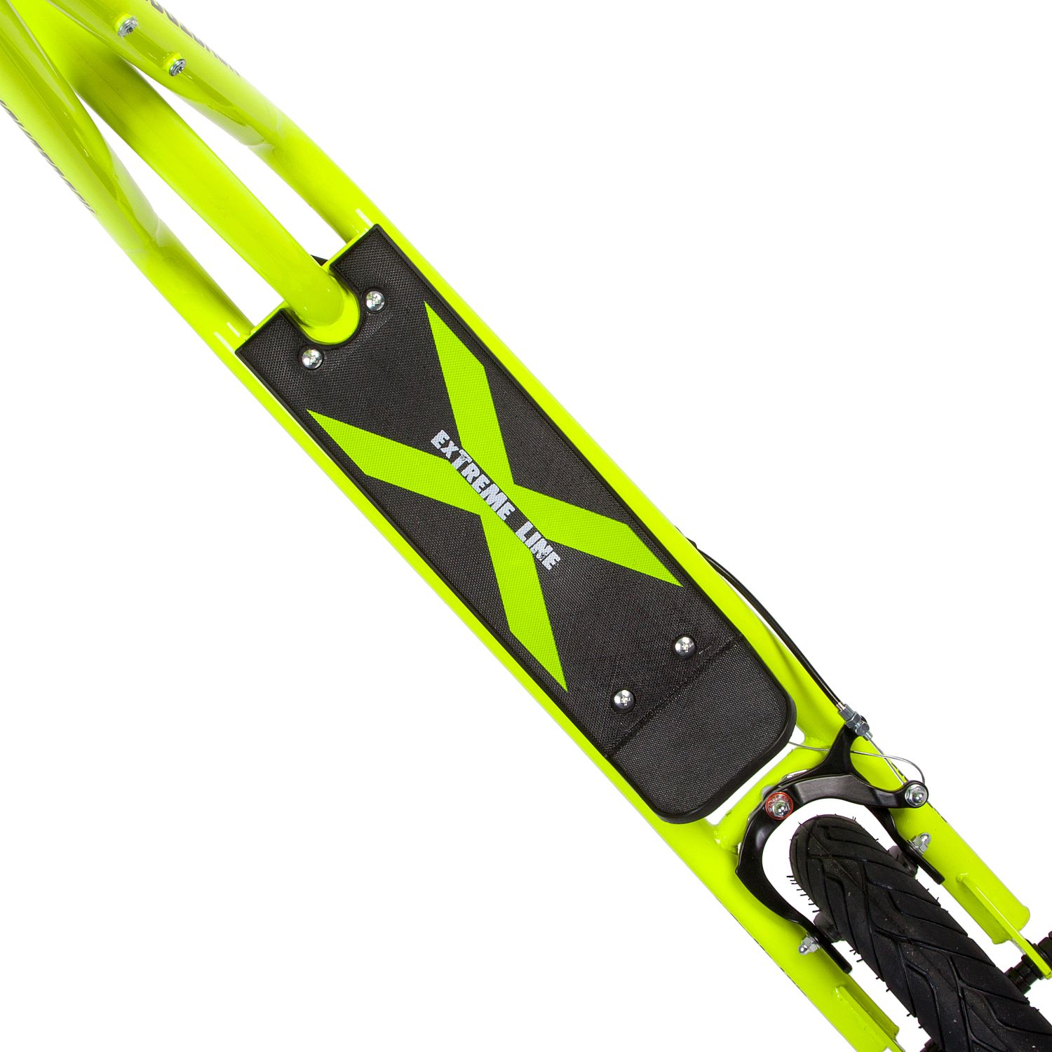 Внедорожный трюковый самокат Novatrack Stamp N1 Extreme Line - настоящая находка для тех, кто не хочет ограничиваться просто катанием, а готов активно передвигаться и покорять препятствия и трамплины, выполняя захватывающие трюки. Для этого модель оснащена гироротором для свободного вращения руля на 360 градусов и пегами для выполнения трюковых элементов. Надежная рама из высоколегированной стали способна выдерживать высокие нагрузки, и предназначена для райдеров от 10 лет и весом до 100 кг. Безопасное торможение обеспечивают сразу два тормоза алюминиевых тормоза Caliper brake, которые эффективно работают даже при скатывании с очень крутой горки на высокой скорости. Широкие надувные колеса позволят кататься не только по асфальтовым дорожкам, но и с легкостью преодолевать парковые тропинки. Надувные колеса имеют ряд ощутимых преимуществ. Они бесшумны, с мягкими колёсами поездка будет мягче и комфортнее. Хорошо защищают от неровностей благодаря амортизирующим свойствам. Такие колёса комфортны при езде по неровным дорогам. В дождливую погоду надувные колеса увереннее держатся в поворотах. Они отлично тормозят и не скользят на разных поверхностях. Благодаря отличному сцеплению, помогают развивать более высокую скорость.
