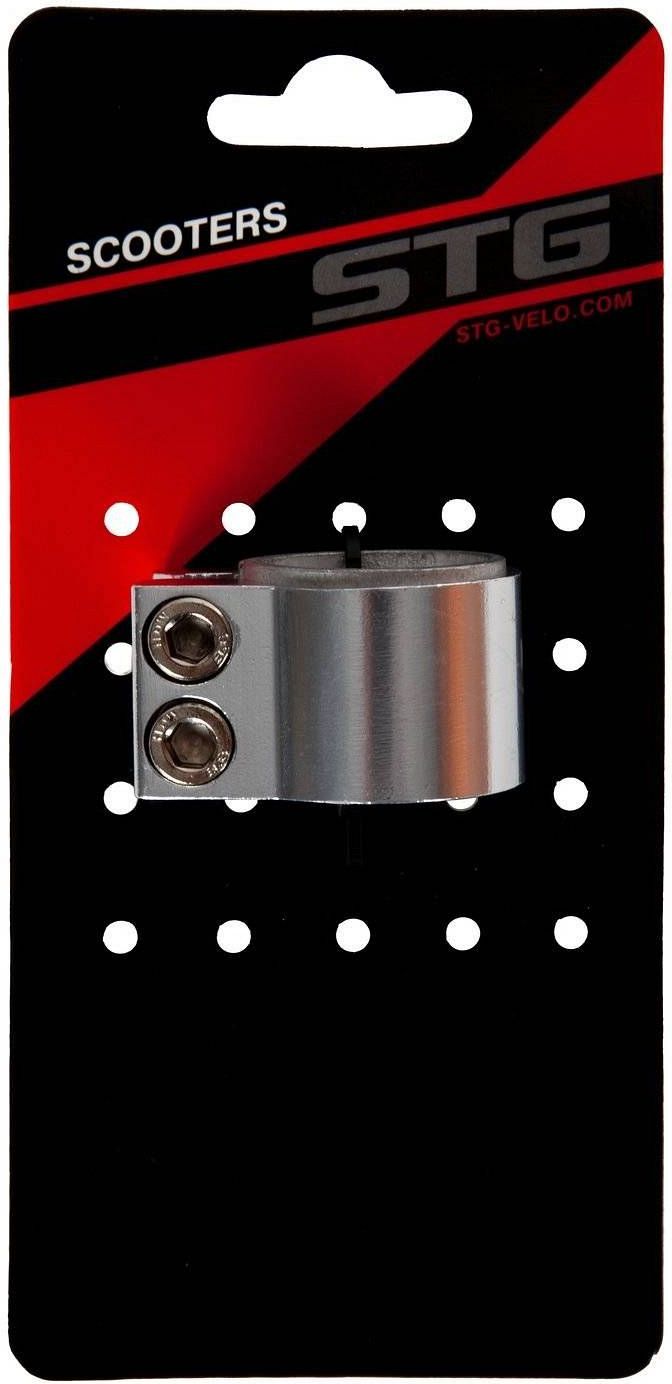 Зажим STG Х105156, 31.8мм для рулей самокатов диаметром 28,6-31,8 мм, с болтами и проставкой, серебристый