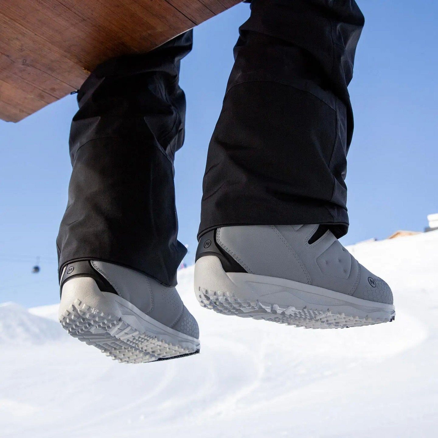 Подошва Gravity+, изготовленная из прочного и легкого EVA, отвечает за отличную амортизацию. Рисунок протектора, вдохновленный гусеницами ратраков, и резиновая часть в носке гарантируют надежное сцепление на льду.