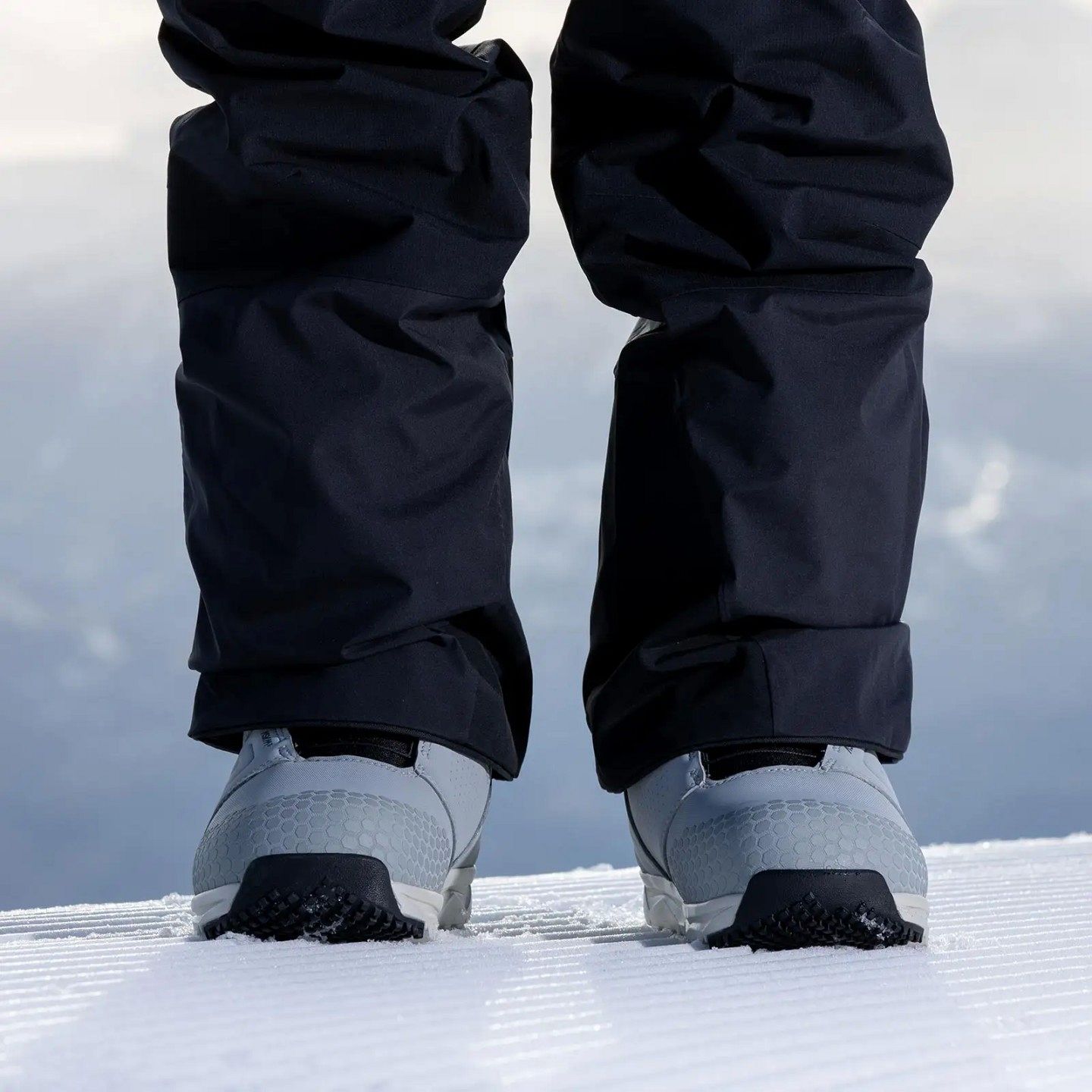 Подошва Gravity+, изготовленная из прочного и легкого EVA, отвечает за отличную амортизацию. Рисунок протектора, вдохновленный гусеницами ратраков, и резиновая часть в носке гарантируют надежное сцепление на льду.