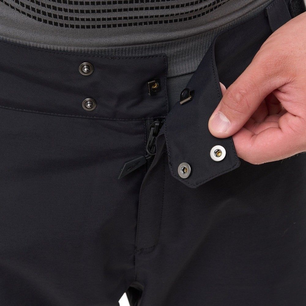 Брюки оснащены четырьмя карманами на молнии, что позволяет удобно разместить все необходимые вещи. Вентиляция на внутренней стороне бедер помогает поддерживать оптимальный температурный баланс во время активного катания. Для удобства надевания ботинок низ брюк по боковому шву имеет молнию, что даёт возможность легко расстегнуть их.
