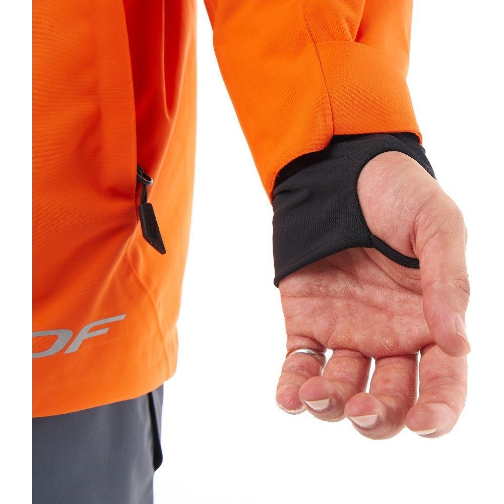 Куртка также оснащена регулируемыми манжетами и эластичными вставками из лайкры, которые плотно облегают запястья, предотвращая попадание снега. Двойная снегозащитная "юбка" защищает от холода и влаги, а латексная резинка с силиконовым покрытием на её нижней части обеспечивает надёжную фиксацию к брюкам.