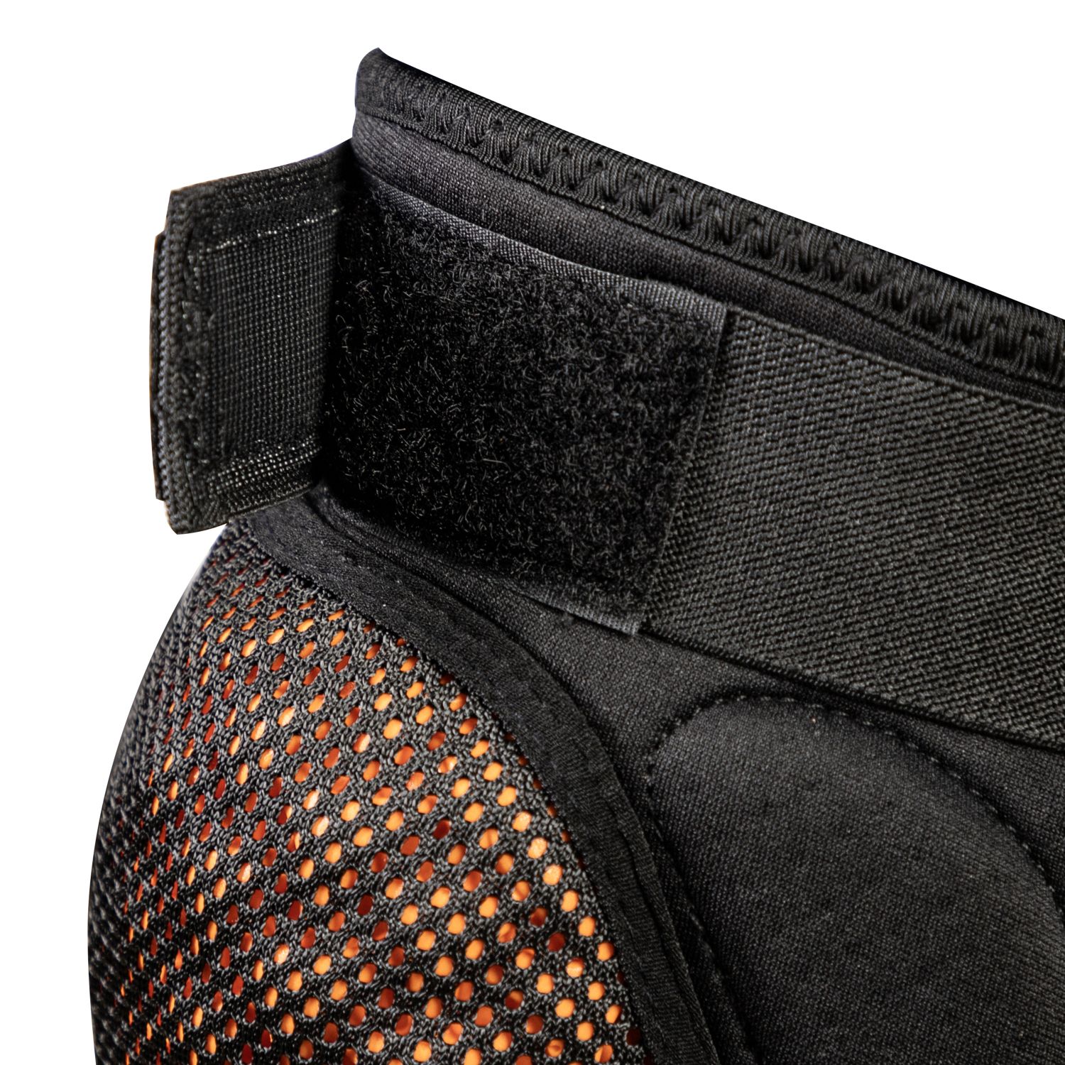 Дышащая ткань с перфорацией способствует оптимальной терморегуляции, что особенно важно при активных занятиях спортом в холодное время года. Конструкция защиты предусматривает возможность индивидуальной подгонки с помощью липучек, что обеспечивает надежную фиксацию и комфортное ношение.