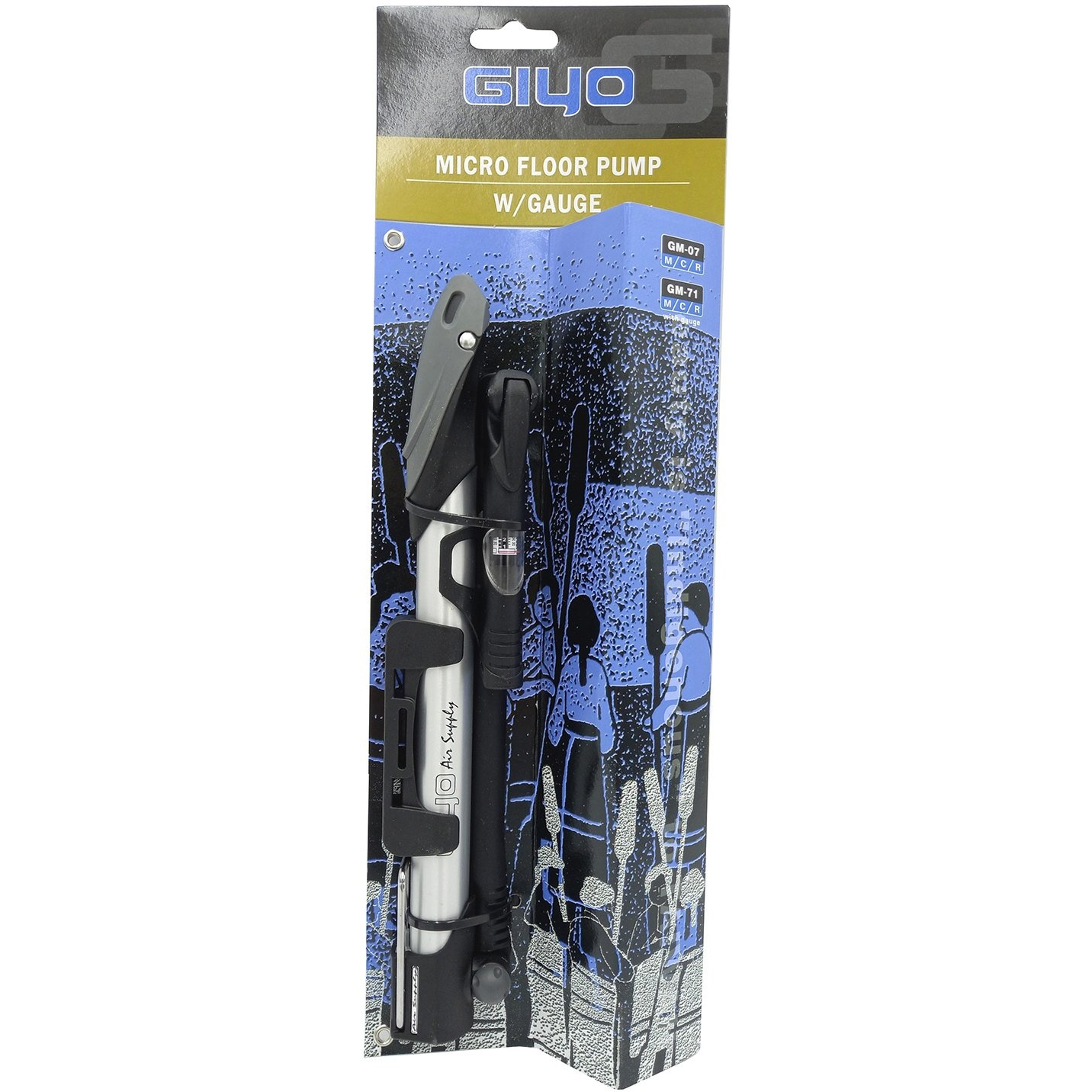 Насос велосипедный Giyo GM-71, ручной, алюминиевый, Т-ручка, с манометром, серебристый, 6-190071