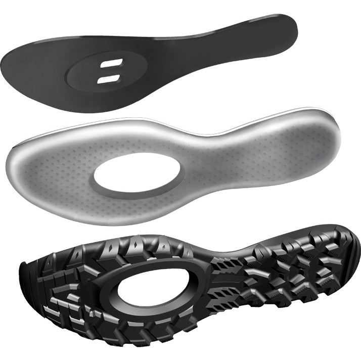 – Вставка из EVA-пены по всей длине подошвы снижает ударные нагрузки при ходьбе.