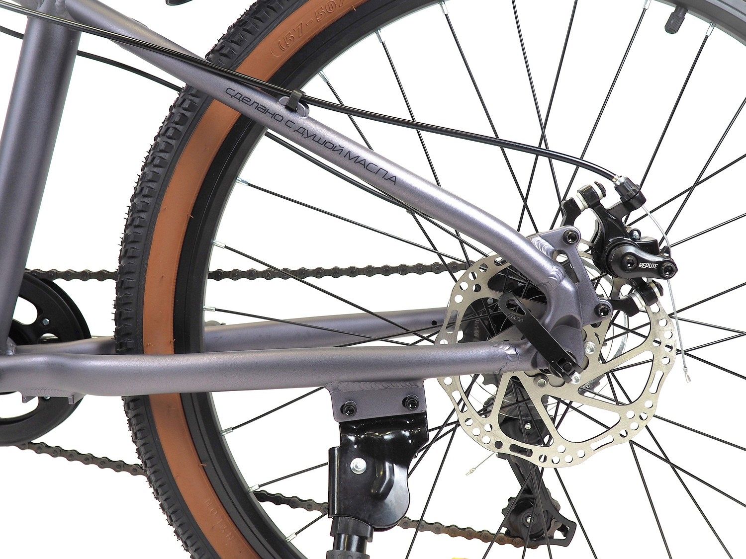 – Покрышки Compass 24"х2.125. Чёрная основа с коричневой полосой придаёт велосипеду стильный вид.