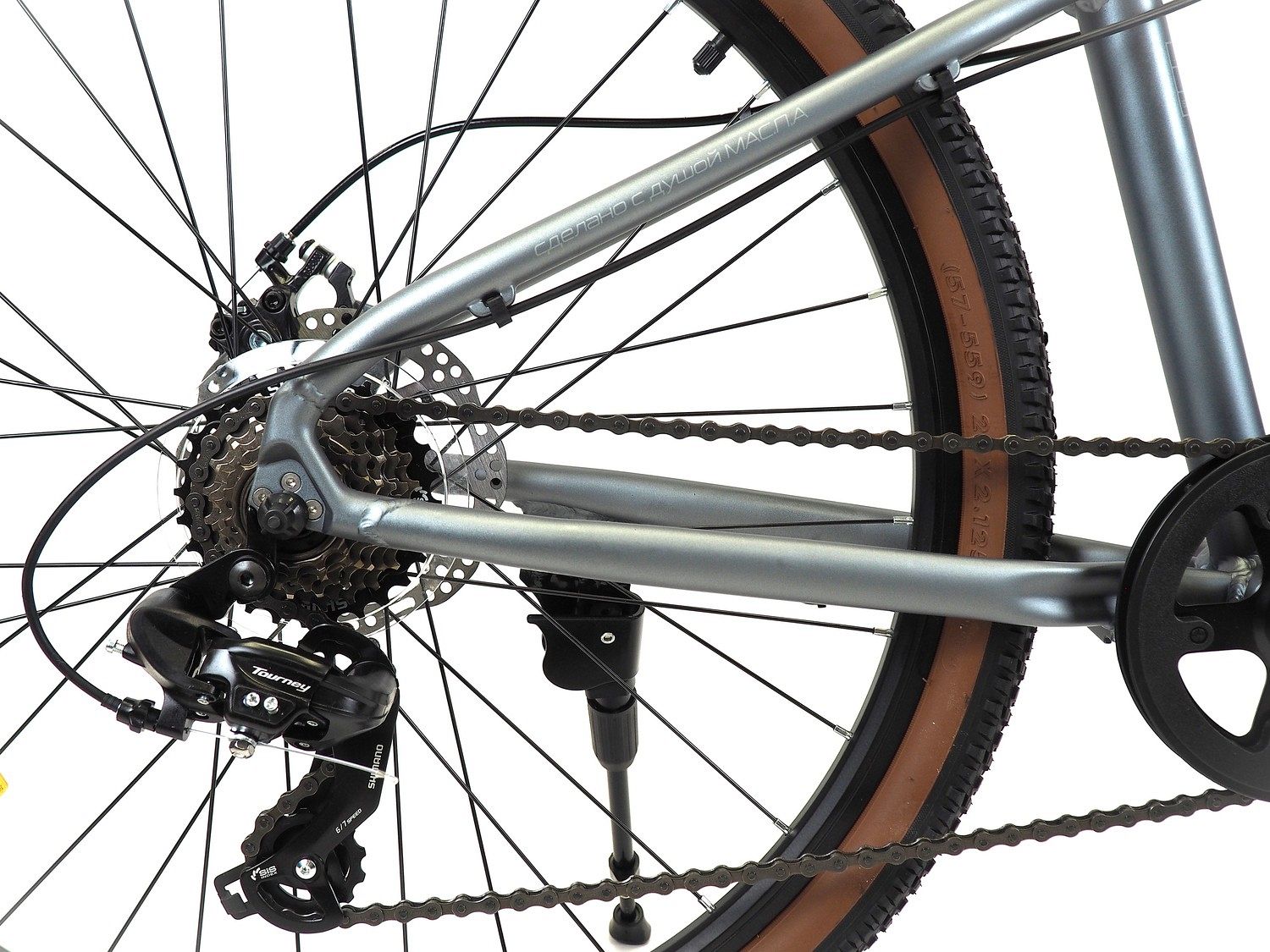 – 6-скоростная трансмиссия Shimano Tourney. Позволяет легко адаптироваться к разным условиям дороги.
