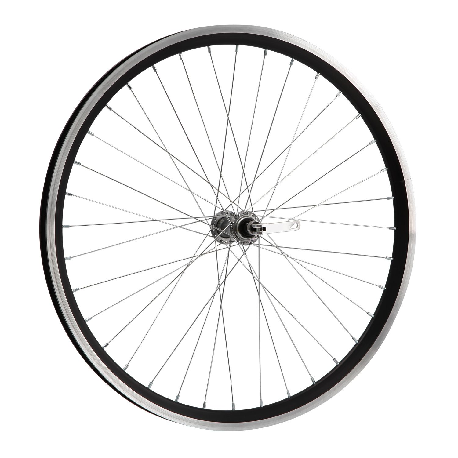Колесо 24" переднее в сборе(без резины) с двойным алюминиевым ободом на 36 спиц со втулкой под V-brake с эксцентриком.
