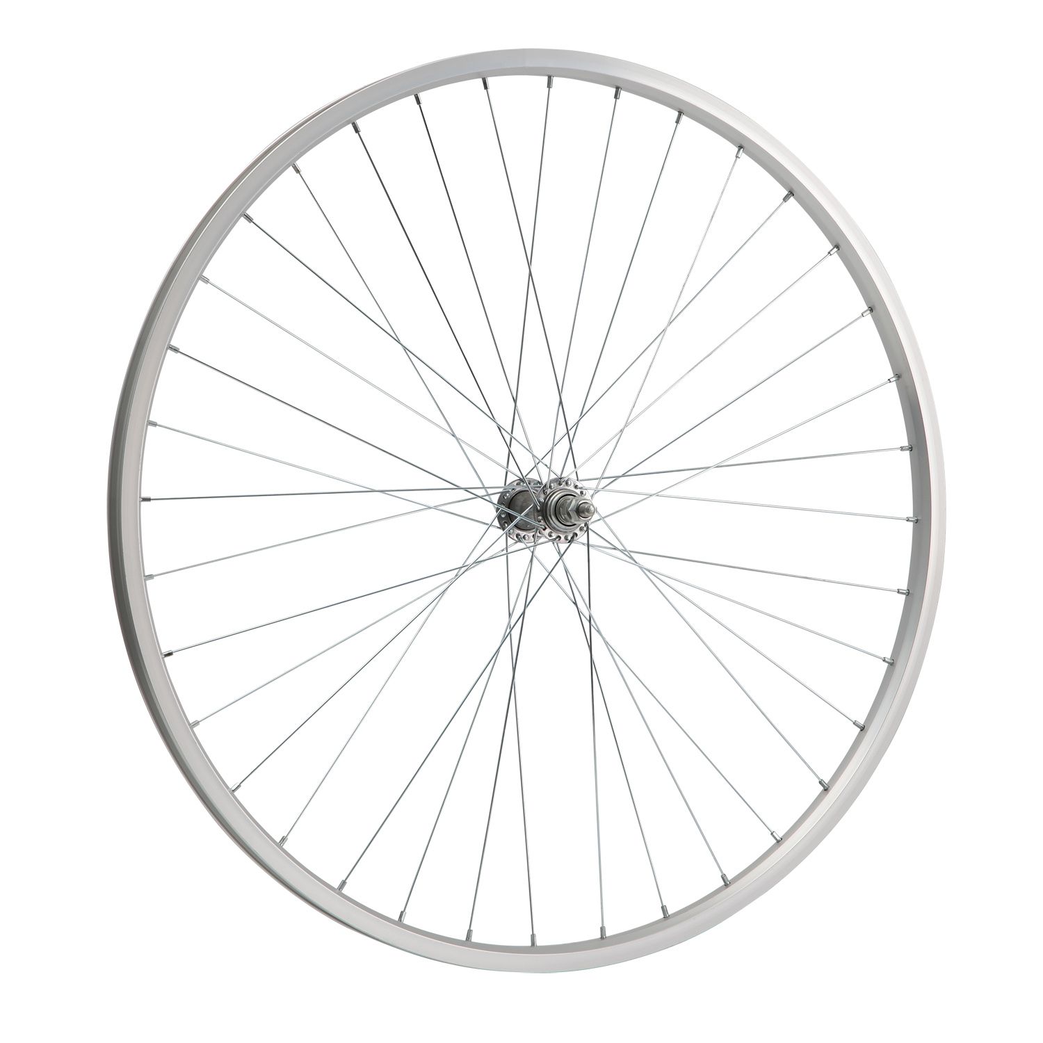 Колесо 28" переднее(без резины), одинарный алюм.обод 36 отв, втулка сталь, гайка