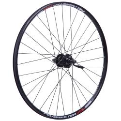 Колесо заднее диаметр 27,5. Двойной пистонированный, алюминиевый обод из 7075 сплава под 32 спицы. Алюминиевая втулка на эксцентрике Shimano Deore HB-M475-L, крепление ротора диска 6-болтов.