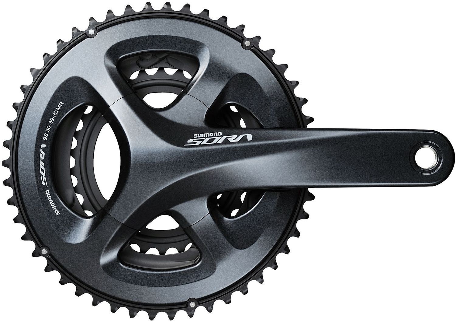 Система шатунов для шоссейного велосипеда. Количество звёзд – 3. Звёзды – 50/39/30Т не съёмные. Для трансмиссий – 9 скоростей. Длина шатунов – 175 мм. Цвет – черный. Материал – алюминий/сталь.