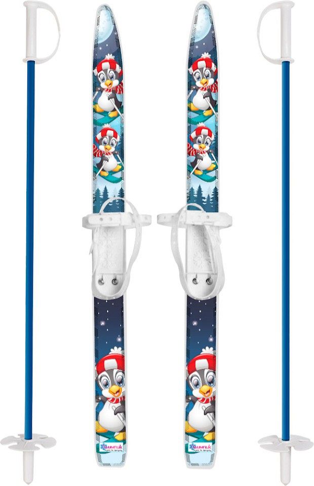 Лыжи детские Лыжики Пыжики с палками (75/75) в сетке, пингвинята