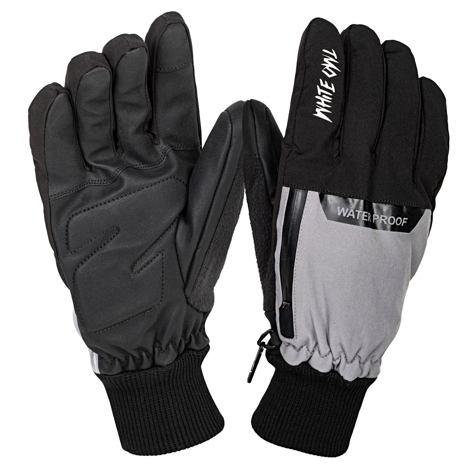 Перчатки зимние White Owl 09-1549, утепленные, с кормашком, серый/черный