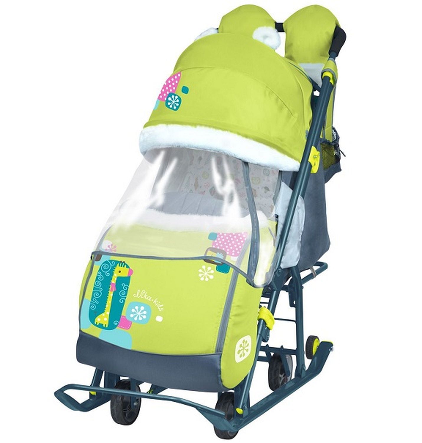 Санки-коляска "Ника детям 7-2" Коллаж-жираф, лимонный