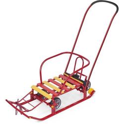 Какой же ребенок не хочет зимой мчаться на санках с горки? Детские санки – одно из главных зимних развлечений, возможность весело и активно провести время, а также удобное транспортное средство, позволяющее родителям ускорить передвижение по улицам. Это и отличный способ семейного отдыха: прокатиться с горы не откажутся даже взрослые. Практичные и удобные санки от российского производителя придутся по душе любому малышу. Они имеют прочный металлический каркас, удобную спинку и сиденье из деревянных реек. Впереди имеется подставка для ног и бампер, что исключает риск перевернуться. Санки оборудованы высокой ручкой для удобного перемещения. Ручка съемная. Также их можно передвигать и при помощи расположенной впереди веревки. Колеса позволят легко преодолевать бесснежные участки дороги или зайти в магазин. Санки можно доукомплектовать мягким сиденьем.